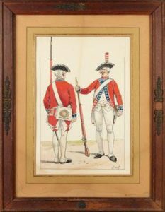Job, Jacques onfroy de Bréville (1858-1931) - Aquarelle représentant deux militaires en habit rouge. Signée en bas et à droite, 34,5 x 23,5 cm (à vue) Encadrée.