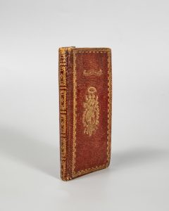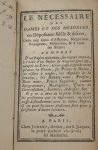 NÉCESSAIRE (Le) des Dames et des Messieurs. Paris, Jubert, s.d. (fin XVIIIe s.). In-12, mar. rouge, roulettes dorées en encadrement, titre frappé or et fers symboliques au centre : couronne fleurie, deux cœurs ardents, faisceau, fuseau,...