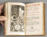 illustrée d'un frontispice, un portrait de Rabelais et 4 planches dépliantes dont la carte du Chinonais. Ex-libris Raymond Boueil et Dr . E. Olivier. Rousseurs, frott. à la reliure, avec certains plats décolorés. Relié à la suite : Les Lettres de François Rabelais écrites pendant son voyage d'Italie. Bruxelle, Foppens, 1710. Ill. d'un portrait-frontispice.