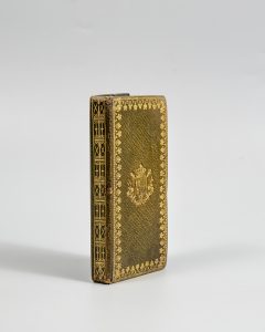 accolées Navarre. Charles-Philippe de France (1757-1836), petit-fils de Louis XV, comte d'Artois, émigra de 1789 à 1814 ; devenu chef du parti ultra-royaliste, il succéda à Louis XVIII en 1824 sous le nom de Charles X, mais abdiqua en 1830 et se réfugia en Angleterre. "Charles X possédait une bibliothèque considérable, dont une partie, composée surtout de pièces de théâtre, se trouve aujourd'hui à la Bibliothèque nationale ; avant de monter sur le trône, il avait déjà acheté la fameuse bibliothèque du marquis de Paulmy, qui entra plus tard tout entière à l'Arsenal". OHR, pl. 2498, fer n° 7. Exemplaire cité. “Les fers des reliures de Charles X ont pour caractéristique l'adjonction du bonnet à l'intérieur de la couronne et des armes de Navarre qui viennent s'accoler aux armes de France, surtout vers la fin du règne, époque à laquelle étaient reprises les traditions de l'ancienne monarchie.” Infimes frott. aux coiffes et aux coins.