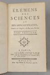 ÉLÉMENS des sciences et des arts littéraires. [Tome III seul]. Paris, Nyon, 1756. In-12, mar. rouge, triple filet doré, fleurettes aux angles, armes dorées, dos à nerfs orné, p. de t. et tom. vertes, tr. dorées (Rel. ép.). Aux armes de...