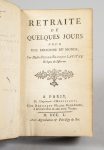 LAFITAU. Retraite de quelques jours pour une personne du monde. Paris, Hérissant, 1750. In-12, mar. rouge, dentelle dorée en encadrement, armes dorées, dos à nerfs orné des fers armoriés au dauphin et fleur de lys, doublures et gardes de papier...