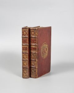 Bade, duchesse d'Orléans : Auguste Marie Jeanne de Bade (1704-1726) venait d'épouser Louis d'Orléans, dit Le Pieux et fils du Régent, en juillet 1724 ; elle mourut prématurément en donnant naissance à son second enfant en août 1726. Cet ouvrage étant dédié à son époux le Duc d'Orléans, cet exemplaire est l'exemplaire de dédicace. OHR, pl. 2571. Cachet ex-libris "M. Pelletier lainé" répété. Mouillures et taches aux derniers ff. du tome I, et à qq ff. du tome II. Mors fendus, charnières fragiles, rel. frottée.