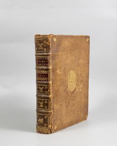 vignettes, 20 planches dépliantes. Aux armes de Henri-François d'Aguesseau (1688-1751). Chancelier de France en 1717, "son hostilité au système de Law lui fit enlever les sceaux le 28 janvier 1718" ; il fut rappelé deux fois jusqu'en 1727. "D'Aguesseau fut élu membre honoraire de l'Académie des sciences le 24 avril 1718 et reçut la charge de commandeur et grand trésorier des ordres du Roi le 31 juillet 1736 (...). Profond érudit et jurisconsulte remarquable, le chancelier d'Aguesseau (...) aimait les livres et avait rassemblé une bibliothèque importante et bien choisie. Ses volumes portaient ses armes ou quelquefois simplement des coquilles aux angles et masses sur le dos". OHR, pl. 594, fer n° 2. Rel. très usagée (mors fendus, coiffe manquante, frott.), rouss., mouillures in fine.