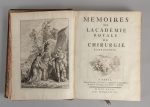 MÉMOIRES de l'Académie royale de chirurgie. Tome I. Paris, Charles Osmont, 1743. In-4, basane mouchetée, fer armorié à la coquille aux angles, armes dorées au centre, dos à nerfs orné (Rel. ép.). Frontispice gravé par Cochin, charmantes...