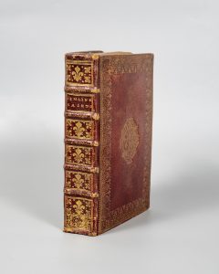 Marie-Charlotte-Sophie-Félicité Leczinska (1703-1768), épouse de Louis XV : "La Reine, qui cherchait à tromper l'ennui de sa solitude, s'était formé une bibliothèque composée presque uniquement d'ouvrages de piété ou d'histoire, dont la plupart furent reliés par Pasdeloup." OHR, pl. 2507, fer n° 2, exemplaire cité. Rousseurs et salissures, traces d'ex-libris au contreplat. Reliure très frottée, coins émoussés.