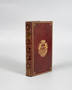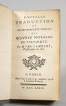PLUTARQUE. Nouvelle traduction de divers morceaux choisis des Œuvres morales. Paris, Panckoucke, 1763. In-12, mar. rouge, triple filet doré, fleuron aux angles, armes dorées, dos lisse orné, p. de t. havane, gardes de papier dominoté, tr....