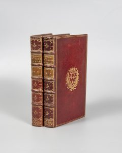 et Marie Leczinska. OHR, pl. 2514, proche du fer n°3, en format réduit. "Intelligente, très instruite, cette princesse eut une influence utile sur un Roi trop faible. (...) Les volumes ayant appartenu à Mesdames de France ne se distinguent que par la couleur du maroquin (...) : Madame Adélaïde faisait revêtir les siens en maroquin rouge, Madame Victoire en vert, et Madame Sophie en citron. Ces ouvrages étaient reliés par Fournier à Versailles, et par Vente. (...) Sa bibliothèque fut vendue aux enchères lors de la Révolution." Reliure tachée, lég. frottements.
