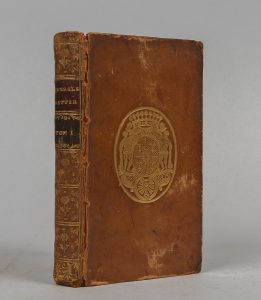 QUERELLES littéraires. [Tome I seul]. Paris, Durand, 1761. In-12, veau, armes dorées au centre, dos lisse orné, p. de titre bordeaux et de tom. noire, tr. rouges (Rel. ép.). Aux armes de Charles-Guillaume Le Normand d'Étiolles (1717-1799),...