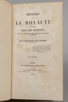 SAINT-PRIEST (Alexis de). Histoire de la royauté considérée dans ses origines jusqu'à la formation des principales monarchies de l'Europe. Paris, Delloye, 1842. 2 vol. in-8, chagrin rouge, encadrement doré de filets et enroulements, chiffre FPO...