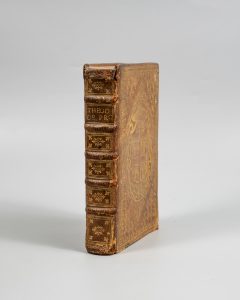 THEODORET de Cyr. De providentia. Paris, Pelicanum, 1630. In-8, veau, double filet doré en encadrement, dentelle dorée, entourant de grandes armes épiscopales (crosses affrontées), dos à nerfs orné, tr. dorées (Rel. ép.). Édition bi-lingue...