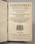latin-grec sur deux colonnes. Théologien de l'école d'Antioche, Théodoret était évêque de Cyr, en Syrie. Exemplaire de prix du collège jésuite de Sens (note ancienne manuscrite sur une garde). Ex-libris Bibliothèque de Semalle et La Gastine. Petites mouillures marginales en fin de volume. Des rousseurs. Lég. dérelié. Rel. frottée, coiffe sup. arrachée.