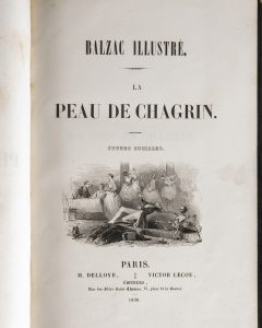 BALZAC. La Peau de chagrin. Paris, Delloye et Lecou, 1838. In-8, demi-chagrin noir à coins, dos à nerfs orné (Rel. ép.). Premier tirage des illustrations par divers artistes, avec la vignette de titre de l'homme tirée en arrière par un...