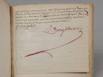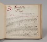 vélin à la bradel, p. de titre de mar. rouge en long (Rel. ép.). Manuscrit à l'encre noire, rouge pour certaines lignes et la signature autographe finale ; encres verte, violette et bleue pour certains mots. Ajouts, ratures et corrections. Ex-libris Dr E. Olivier et Ad. Olivier.