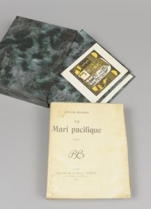 BERNARD (Tristan). Un mari pacifique. Paris, Éditions de la Revue blanche, 1901. In-12, brochage sali, chemise et étui postérieurs. Édition originale. Un des 20 ex. num. sur Hollande. celui-ci à toutes marges. Ex-libris sur la chemise Dr E. Olivier.