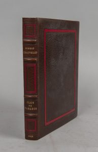 celui-ci num. B, sur Japon impérial, spécialement imprimé pour Madame Robert Chauvelot. Joints du même auteur, même éditeur, reliure identique : mar. bleu : L’Inde mystérieuse. 1924. Troisième édition. Ex. sur Hollande. mar. brun : Iles de paradis. Ceylan, Java et Tahiti. 1925. Ex. sur Chine hors commerce spécialement imprimé pour l'auteur et son épouse. Traces blanches sur le premier plat. Dos lég. passé.
