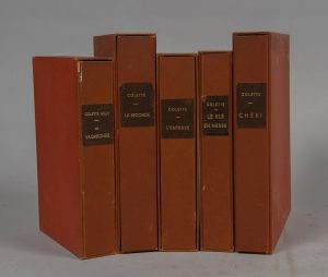 COLETTE. 5 volumes in-8, brochés, chemises et étuis. La Seconde. Ferenczi, 1929. Un des 265 sur Hollande, à grandes marges. L’Entrave. Librairie des lettres, 1913. Un des 130 sur Hollande. La Vagabonde. Ollendorff, 1910. Brochage fatigué. Le...
