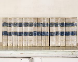 GRIMM et DIDEROT. Correspondance littéraire, philosophique et critique. Paris, Longchamps et Buisson, 1813. 3 parties en 15 vol. in-8, demi-vélin, dos lisse, p. de t. et de tom. mar. bleu (Rel. ép.). Quelques rousseurs, dos empoussiérés,...