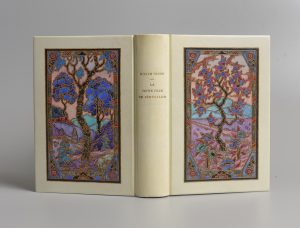 soie brochée bleue, tête dorée, non rogné, couv. et dos cons., chemise (passée) et étui (Georges Baudin). Édition originale. Un des 25 ex. sur Hollande, à grandes marges. Belle reliure typiquement Art Déco, dans l’esprit de Sue et Mare.
