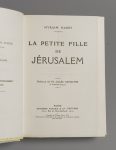 HARRY (Myriam). La Petite fille de Jérusalem. Paris, Fayard, 1914. In-12, vélin à la bradel, plats ornés d’un décor pyrogravé et peint représentant un paysage d’arbre sur fond montagneux, à l’imitation de vitraux, doublure et gardes de...