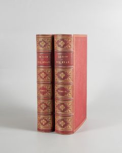 LE SAGE. Histoire de Gil Blas de Santillane. Paris, Garnier frère, 1864. 2 vol. in-8, mar. rouge, triple filet doré et filet à froid, dos à nerfs orné, tr. dorées, dentelle int. (Ottmann-Duplanil). Portrait et 5 planches hors texte. Ex-libris...