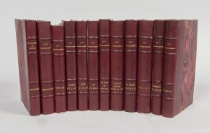MAUPASSANT (Guy de). 12 vol. in-12, en reliure identique : demi-mar. bordeaux à coins, dos à nerfs, tête dorée, couv. et dos cons. (Kauffmann-Horcroix). Ex-libris Dr E. Olivier. -Une vie. Paris, Crès, 1921. Ill. de Deslignières. Un des 30 ex....