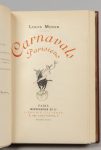 MORIN (Louis). Carnavals parisiens. Paris, Montgrédien, s.d. (1898). In-12, mar. violet, dos nerfs passé, tête dorée, frise int. décorée de têtes de fous, couv. et dos cons. (Bretault). Ill. en couleurs de Louis Morin. Un des 25 sur Japon, à...