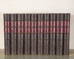 MUSSET. Œuvres complètes. Paris, Charpentier, 1866. 10 vol. in-4, demi-mar. brun à coins, dos à nerfs orné, p. de t. et de tom. rouges, têtes dorées (Raparlier). Jolie édition illustrée 28 dessins de Bida et un portrait de Musset. Tirage sur...