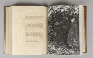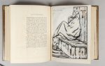 marocain mosaïqué de mar. orange, violet avec feuillage vert et sable, palmes dorées ornant le tout, dos lisse orné d'un motif du même vocabulaire, encadrement int. de filets dorés, doublure et gardes de soie dorée, doubles gardes de papier marbré, non rogné, tr. dorées à témoins, couv. et dos cons., étui (Yseux, succ. de Thierry-Simier). Belle illustration de Henri Hourtal, comprenant des dessins en noir et des en-têtes et hors-texte aquarellés par l'artiste. Tirage à 150 exemplaires. Celui-ci, n° 25, est imprimé spécialement pour Adolphe Olivier. Il est enrichi de 3 lettres à M. Adolphe Olivier, trésorier des Médecins bibliophiles, qui dirigea cette réalisation : concernant cet ouvrage, deux lettres sont des frères Tharaud et une est de l'artiste Henri Hourtal. Il comprend surtout un nombre très important d'épreuves originales : 20 dessins signés ayant servi à l'illustration de l'ouvrage, et un pour une Initiale, et diverses épreuves, en noir ou en couleurs, certaines réhaussées, et signées. In fine, Menu (avec dessin original), et prospectus.