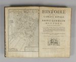 BOUILLART (Dom). Histoire de l’Abbaye royale de Saint-Germain des Près… Paris, Dupuis, 1724. In-folio, veau, triple filet doré en encadrement, armes dorées au centre, dos à nerfs orné (Rel. ép.). Edition originale illustrée de 24 planches...
