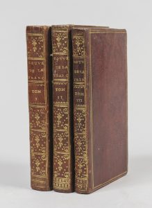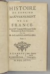 BOULAINVILLIERS. Histoire de l’ancien gouvernement de la France. La Haye, Amsterdam, aux dépens de la Compagnie, 1727. 3 vol. in-12, maroquin rouge, triple filet doré, dos lisse orné, tr. dorées (Rel. ép.). Édition originale rare de cette...