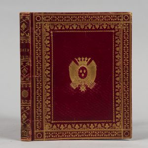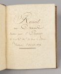 tr. dorées (Rel. ép.). Manuscrit joliment calligraphié, décrivant les 57 chasses de 1819, du 8 janvier au 29 décembre, avec les lieux de chasse (Rambouillet, Meudon, Sénart, Compiègne, Saint-Germain...), le nombre, les noms des membres de l'équipage, tableaux de chasse. Ex. aux armes de France. Rousseurs importantes. Légers frott., pied du dos décollé.