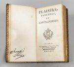 Ouvrage rare, unique édition, concernant les domaines de chasse. Exemplaire comprenant (1) f. de titre, (2) ff n. ch. (avertissement au duc de Noailles), 147 pp., (1) p. bl. Thiébaud, 105, précise que ce dernier feuillet sur le placement des 13 cartes "manque à presque tous les exemplaires" ; "à notre connaissance, ces 13 cartes annoncées n'ont jamais été publiées". Exemplaire de Huzard, de l'Institut, avec son cachet sur une garde. Ex-libris manuscrit ancien. Rel. frottée, passée.