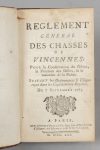 CHASSE]. Règlement général des chasses de Vincennes. Paris, d'Houry, 1765. In-12, veau, dos à nerfs orné, p. de t. rouge (Rel. ép.). Rouss., qq annotations manuscrites en marge. Rel. frottée, accroc.