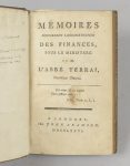COQUEREAU (Jean-Baptiste-Louis)]. Mémoires concernant l’administration des finances sous le ministère de M. l'abbé Terrai. Londres, John Adamson, 1776. In-12, maroquin rouge, triple filet, dos lisse orné, tr. dorées (Rel. ép.). Édition...