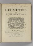 DESCARTES. La Géométrie. Paris, Angot, 1664. In-4, 119 pp., (9) pp. n. ch., vélin, dos lisse, titre manuscrit (Rel. ép.). Première édition séparée du texte français de cet ouvrage important sur l'invention de la géométrie analytique....