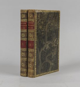 DEVISME. Histoire de la ville de Laon. Laon, Courtois, 1822. 2 vol. in-8, veau vert raciné, frise dorée, dos lisse orné, p. de t. et de tom. rouges (Rel. ép.). Édition originale, illustrée d'une vue dépliante de la ville de Laon. Rousseurs,...