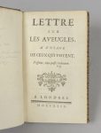 DIDEROT]. Lettre sur les aveugles, à l'usage de ceux qui voient. Londres, 1749. In-8, 220 pp., 1 f. n. ch., 6 pl., maroquin rouge, triple filet, dos lisse orné, tr. dorées sur marbrures (Rel. ép.). Édition originale rare. Exemplaire de première...