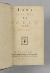 L’ART de plumer la poule sans crier. Cologne, Robert le Turc, 1710. In-12, veau, triple filet, dos lisse orné, p. de t. brune (Rel. ép.). Édition originale de ce roman à clefs dirigé contre les fermiers généraux. Mouillures, taches, rel...