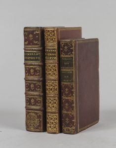Joints : - THOMAS A KEMPIS. De imitatione Christi. Lugduni, Elzevier, s. d. (1653). In-16, mar. rouge, triple filet doré, dos à nerfs orné, p. de t. verte, tr. dorées (Rel. du XVIIIe s.). Titre-gravé, frontispice. Willems 729. - Tableau de toutes espèces de successions régies par la coutume de Paris. Paris, Leboucher, 1785. 2 tomes en un vol. in-16, mar. rouge, triple filet doré, dos lisse orné, p. de t. vertes, tr. dorées (Rel. ép.). 4 tableaux dépliants. Rel. lég. frottée.
