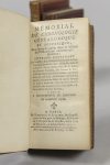 MÉMORIAL de chronologie généalogique et historique. Paris, Ballard, 1752. In-16, mar. rouge, triple filet, dos à nerfs orné, p. de t. verte, armes dorées en queue, tr. dorées (Rel. ép.). Aux armes d'un évêque de la famille de Choiseul....