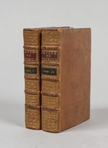 PASQUIER (Etienne). Lettres. Lyon, Frellon. 1607. 2 vol. in-16, veau, dos à nerfs orné, pièces de titre rouges, de tomaison vertes (Rel. du XVIIIe s.). Ex-libris Schefer et André Felibien, historiographe du Roi. Discrète mouillure sur quelques...