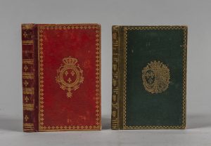 Bourbon-Sicile, duchesse de Berry (1798-1870) ; elle "avait constitué dans son château de Rosny, près Mantes, une luxueuse bibliothèque remarquable tant par le choix des éditions et la richesse des reliures que par l'importance des manuscrits qu'elle renfermait". OHR, pl. 2519. Ex-libris Bibliothèque de Rosny. Rousseurs. On joint : SOUMET. L’Incrédulité, poëme. Troisième édition. Paris, Michaud, 1814. In-2, demi-mar rouge, dos lisse orné de fleurs de lys, frise dorée fleurdelisée, armes royales (Rel. ép.). Frontispice. Fortes rousseurs. Cachet de collection sur la page de titre. Rel. frottée.