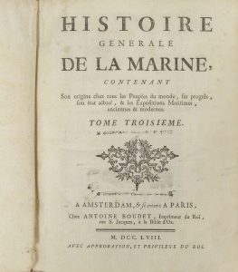 TORCHET DE BOISMELÉ (Jean-Baptiste)]. Histoire Générale de la Marine, contenant son origine chez tous les Peuples du monde, ses progrès, son état actuel, & les Expéditions Maritimes anciennes et modernes. Amsterdam et Paris, Boudet, 1744-1758....