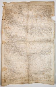 - DRÔME. 1361. SAINT-DIDIER (VAUCLUSE). Pièce en latin sur vélin (55 x 35,5 cm) du 21 Janvier 1361. Hommage de diverses redevances sises à SAINT-DIDIER (84) dans le diocèse de DIE (26), fait par nobles Jourdain et Bernard de MONTLAHUC...