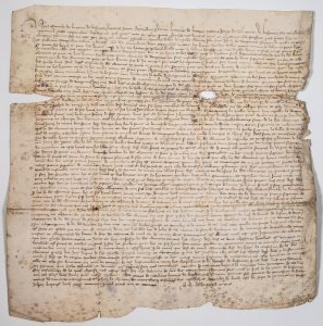 - DOUBS. 1380. FRANCHE COMTÉ - Piece on wove paper (36 x 35 cm), made by the Court of BESANÇON on the Monday after the Nativity of Saint John the Baptist 1380. Sale by Miss Clémence, daughter of Jean de Roignon, squire of the Seigniory of ROGNON (Doubs), to Pierre de Montmartin, knight. - Text in French - [small wear holes, good condition for this date] -