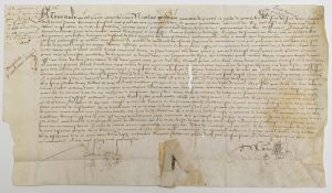 - OISE 1536. Châtellenie de CREIL (60). Guillaume de MADAILLAN Seigneur de MONTATAIRE (60). Parchemin (19 x 34cm). Petits trous. «Devant Nicolas POTDEVIN Grenetier de CREIL et garde de par le Roy, notre Sire, du Scel de la Châtellenie dudit CREIL....