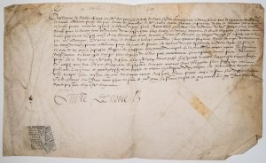 - NORMANDIE. 1550. ROUEN (76). Pièce signée sur vélin (22 x 36 cm). Texte en Français. Pièce signe Guillaume DE NOBLE, écuyer et Maître de ports de la Ville de Lyon, l'un des Commissaires ordonnés sur le fait de l'exécution de l'ordonnance...