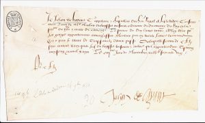 - HAUTE-GARONNE. 1561. Château de L'ISLE-EN-DODON (31). Pièce signée sur vélin par Jehan De BAYANT, Capitaine du Château Royal de L'ISLE EN DODON. Jehan de BAYANT «confesse avoir reçu de Messire Nicolas DUBOYSSET Trésorier ordinaire du...