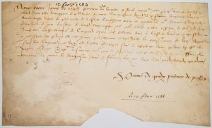 - YVELINES. 1584. PRIORY OF POISSY (78). Piece signed on vellum by Jeanne de GONDY, Prioress of POISSY. (14 x 23 cm). "We Sister Jeanne de Gondy Prioress of the Royal Convent and Monastery and Priory of Saint-Louis de POISSY" gives a receipt for the sum of 25 ECU on February 12, 1584. (The Priory of Saint-Louis de POISSY is a former Monastery of Dominican nuns founded in POISSY (78) in the XIVth Century depending on the Diocese of Chartres and the province of Sens from 1304 to 1622 and which was almost totally destroyed following the French Revolution).